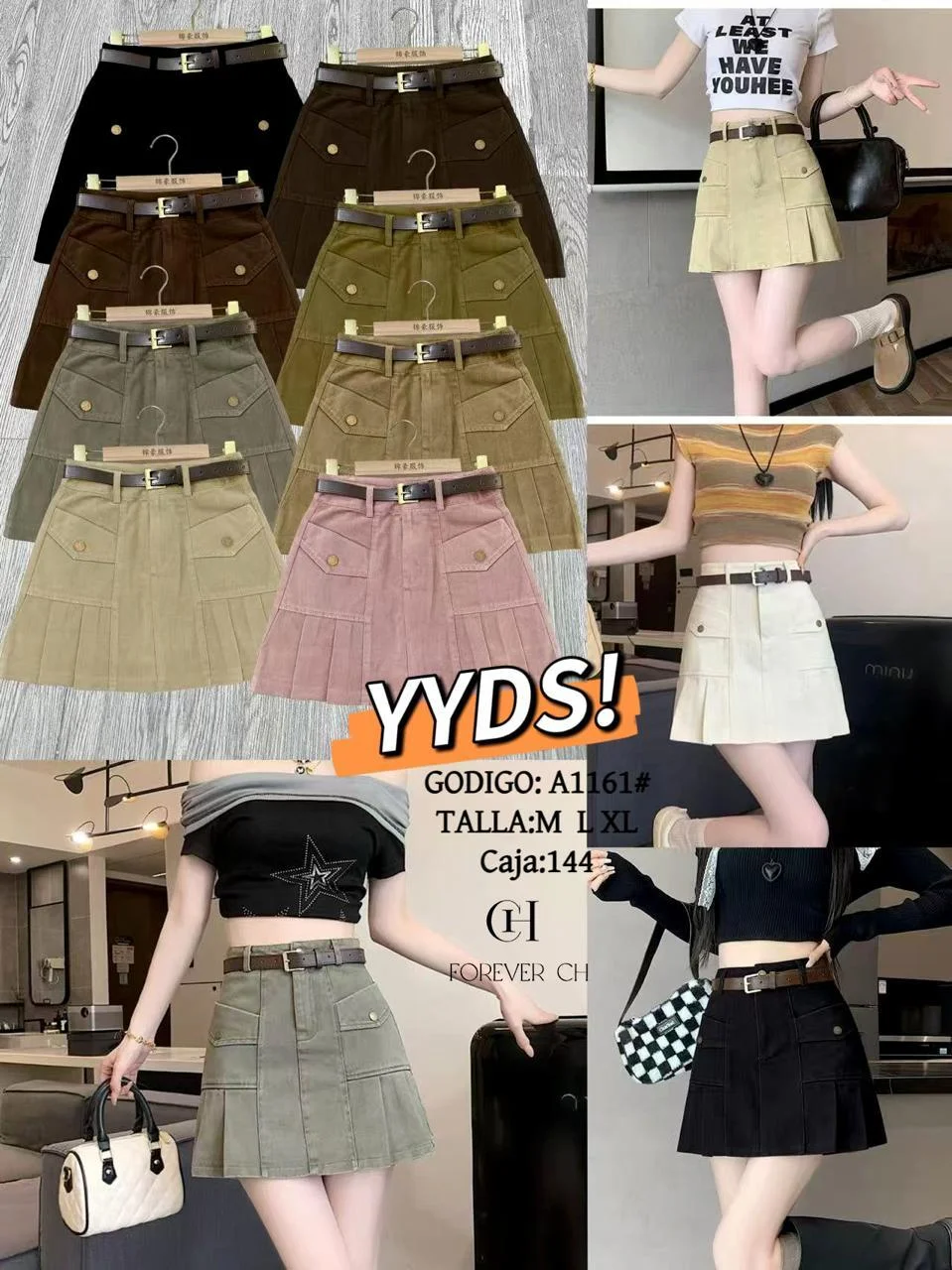 Falda con bolsas y cinturon-A1161