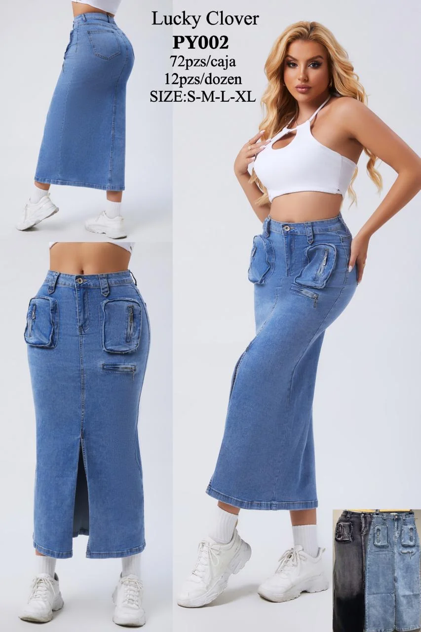 Falda larga de mezclilla con bolsillos-PY002