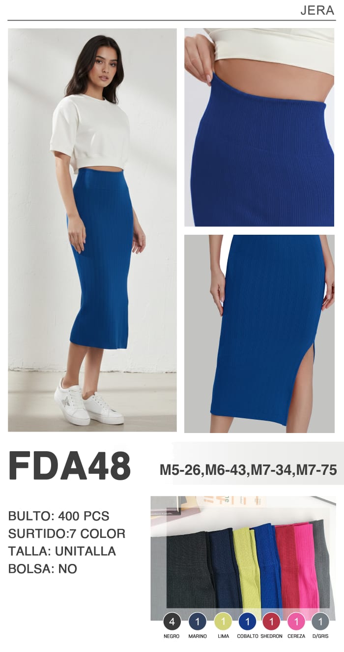 Falda midi acanalada con abertura-FDA48