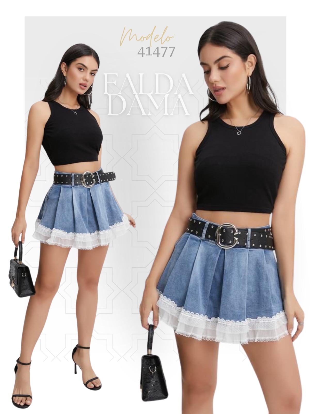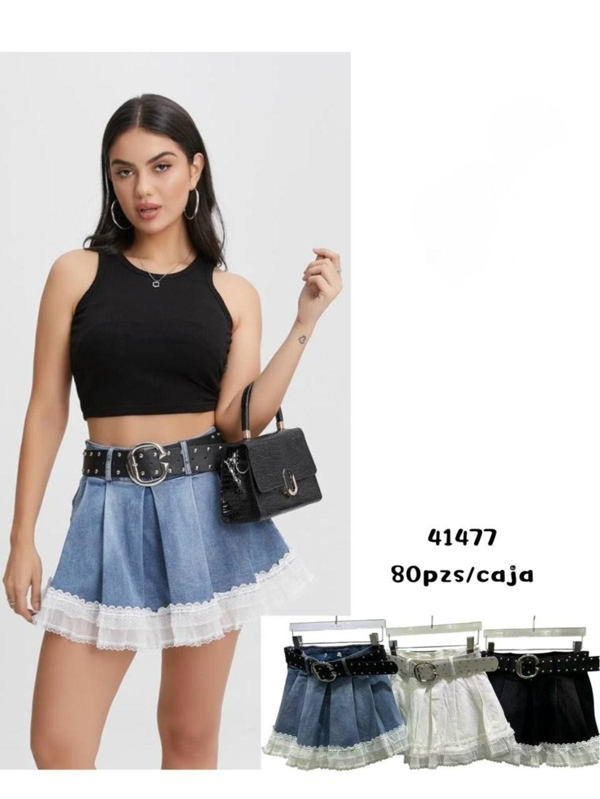 Falda short con encaje-41477