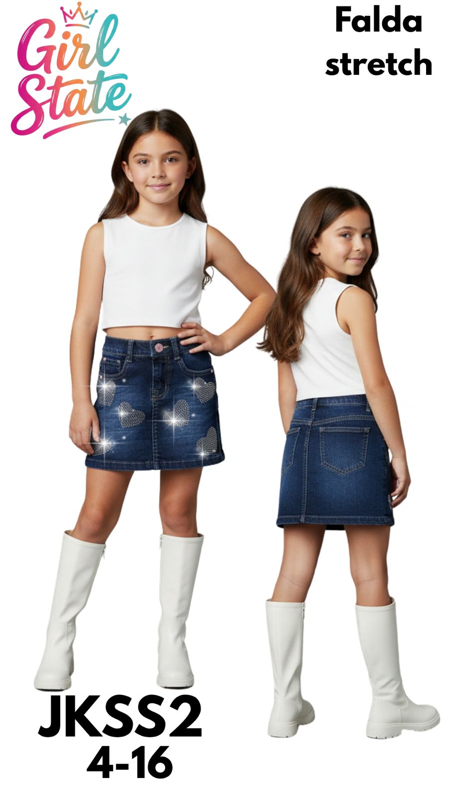 Falda stretch de mezclilla con diseño de corazones-JKSS2