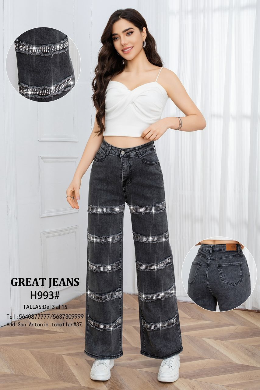 Jeans anchos con diseño brillante-H993#