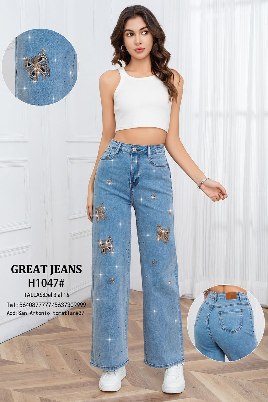 Jeans con apliques de mariposas-H1047