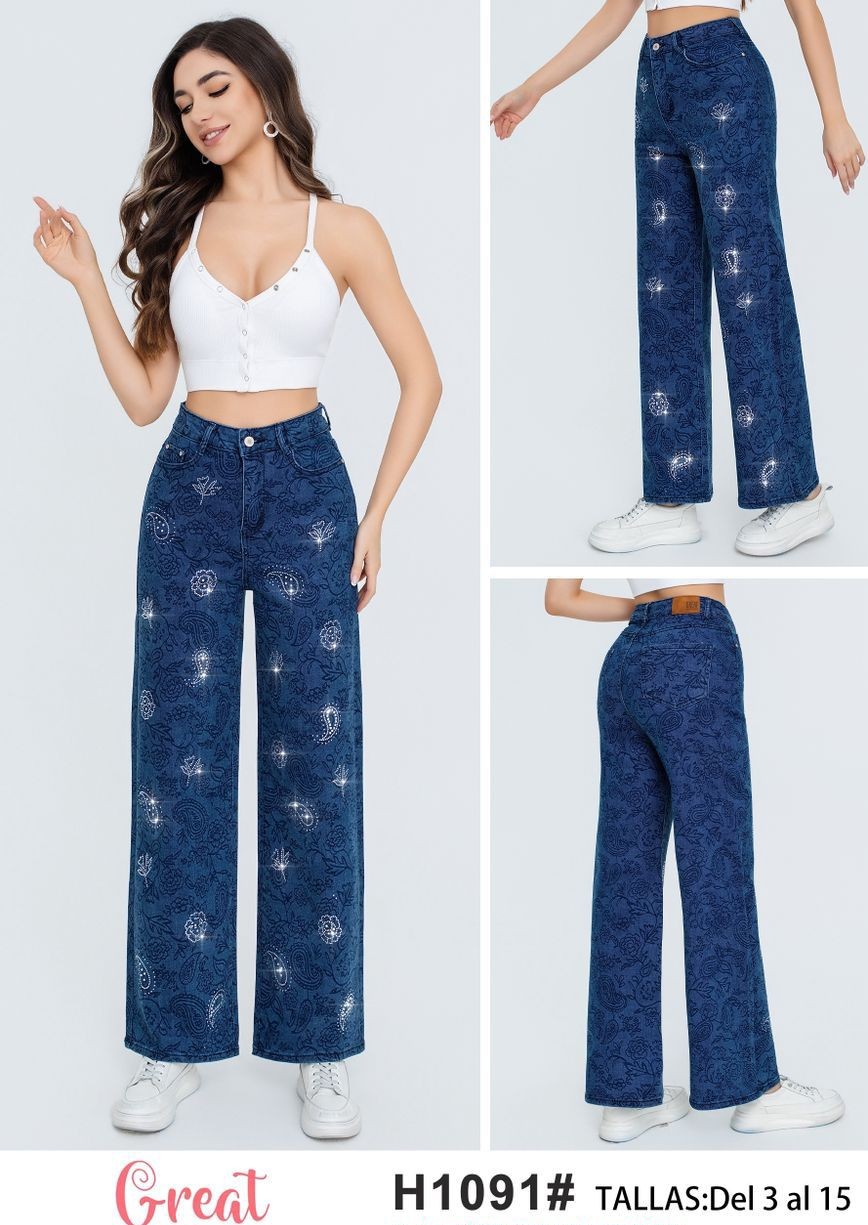 Jeans de corte Holgado con brillos Great Jeans-H1091
