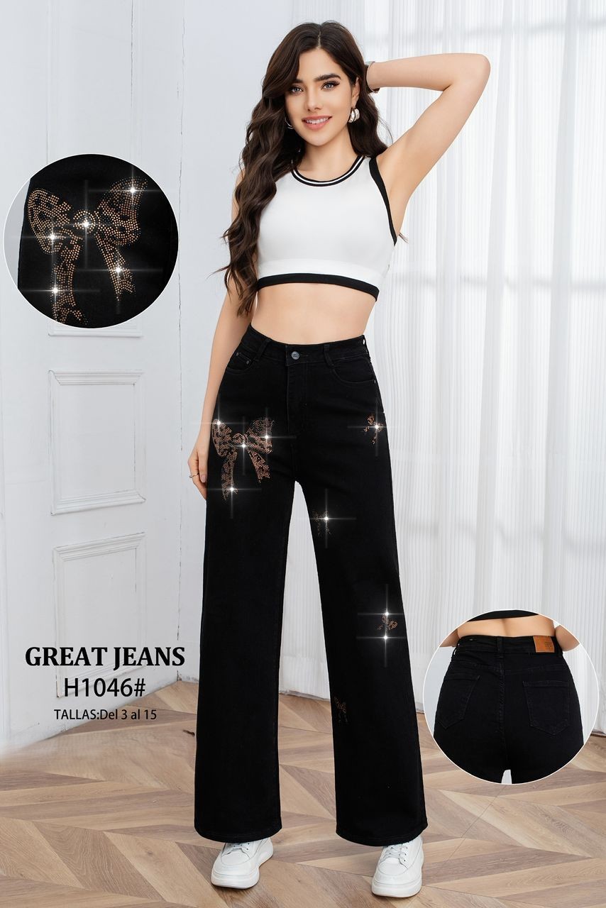 Jeans de corte Holgado con brillos Great Jeans-H1046