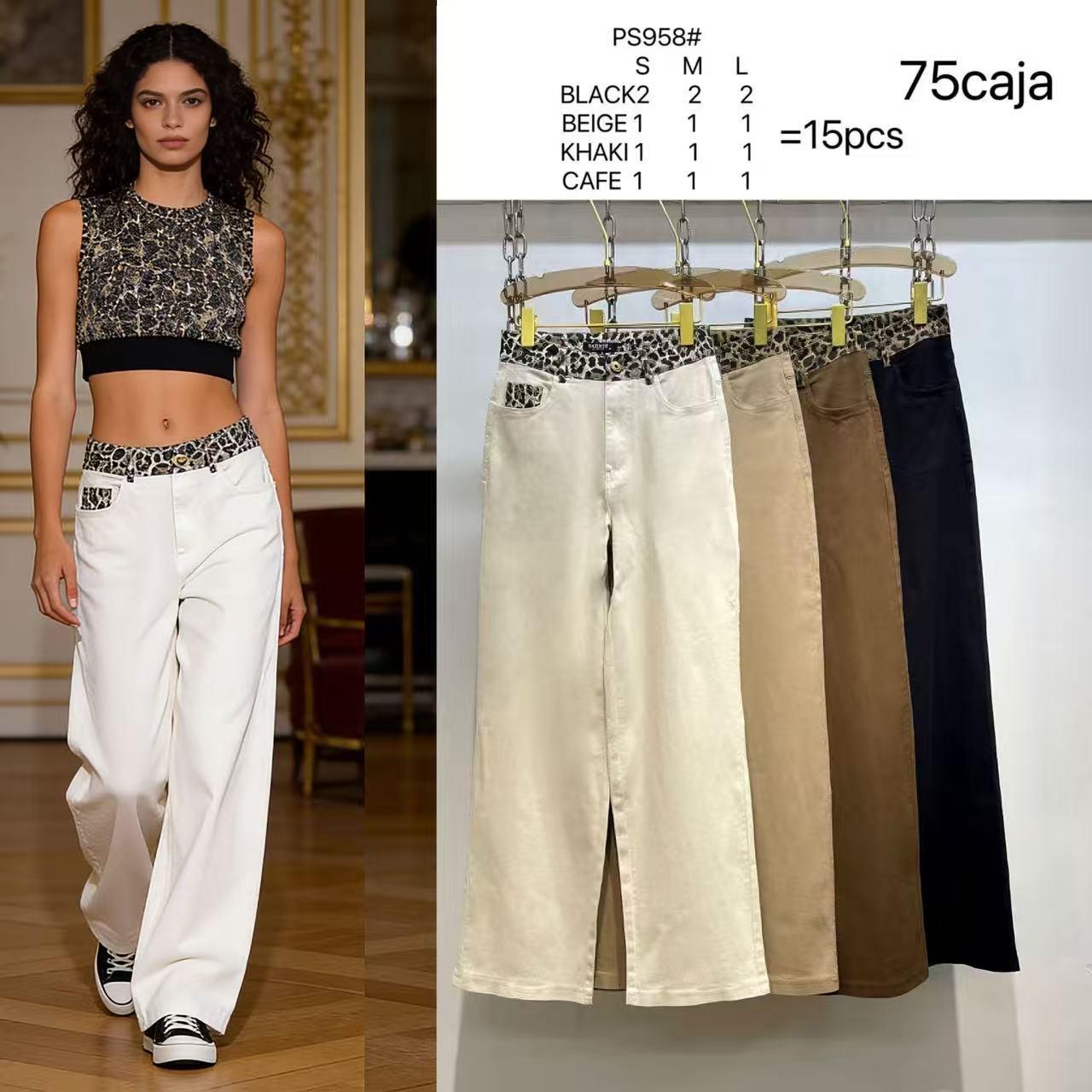 Jeans de pierna ancha con detalles de leopardo-PS958