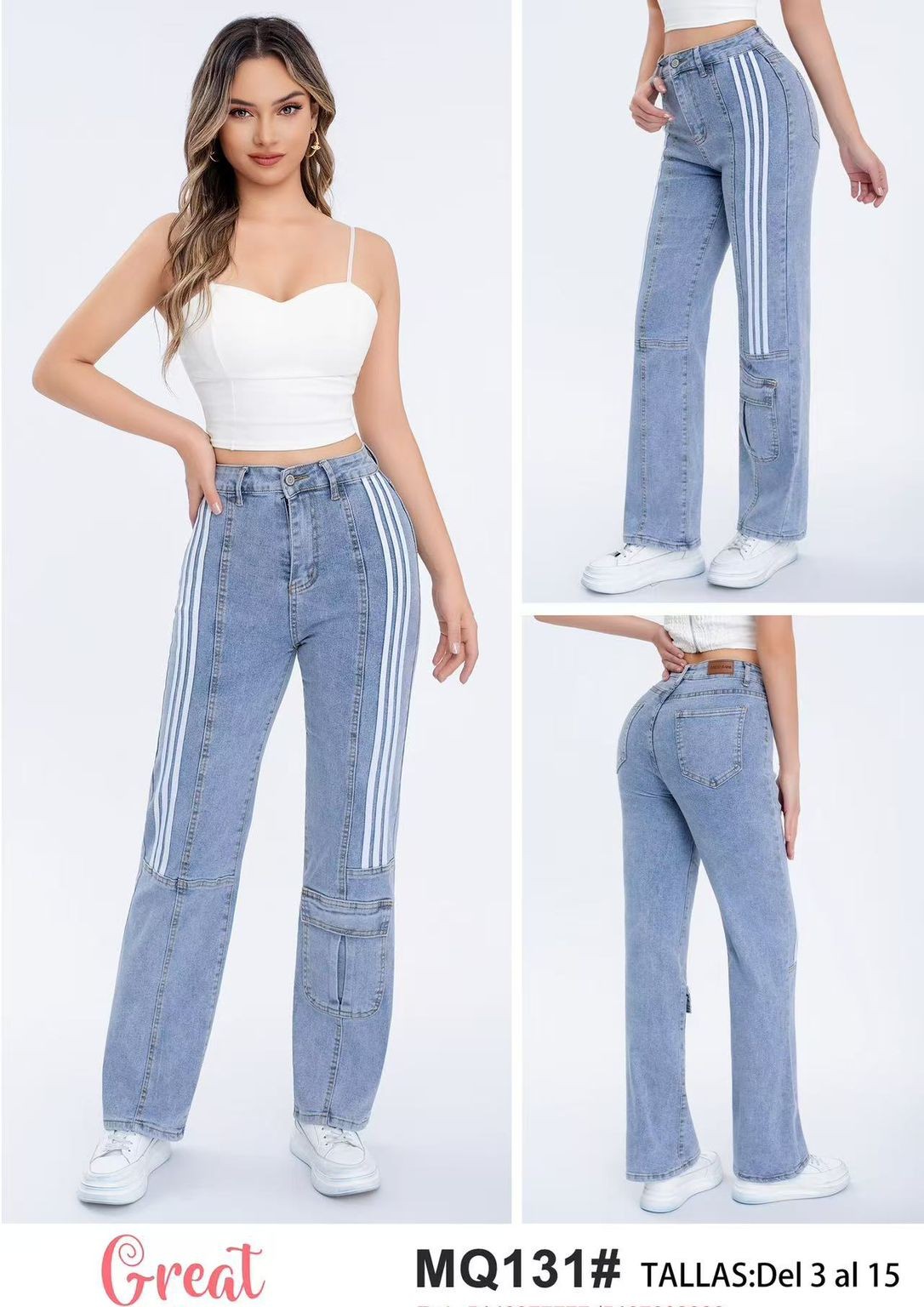 Jeans Mujer Corte Cargo con Bandas Laterales-MQ131
