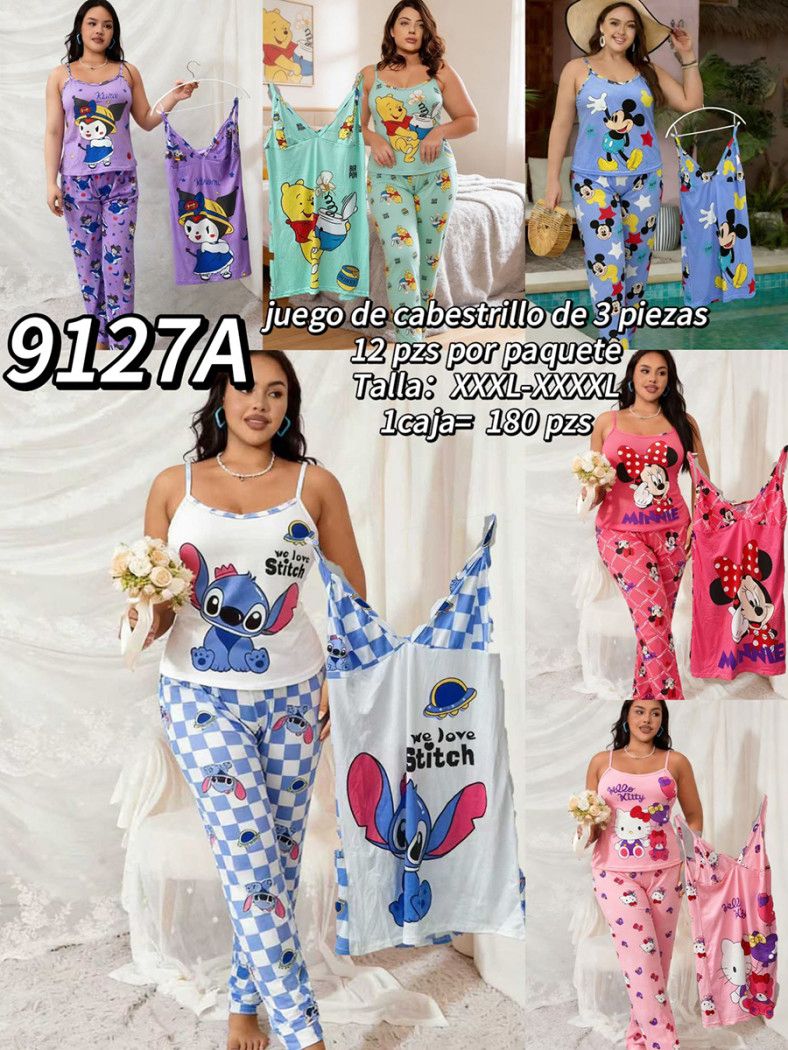 Juego de pijama de 3 piezas con estampados de personajes animados-9127A