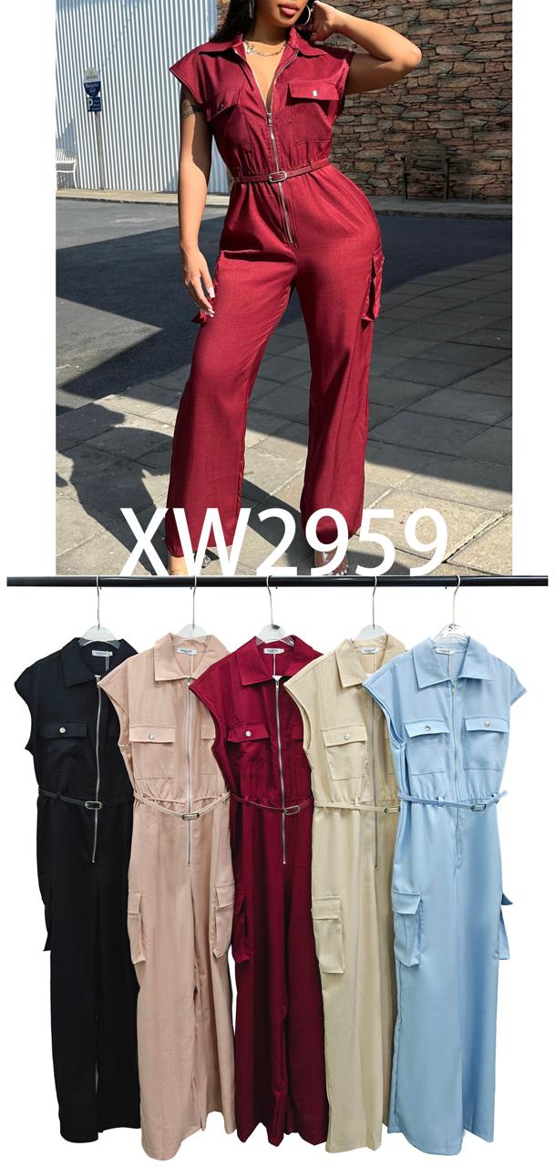 Jumpsuit con cremallera y cinturón-XW2959