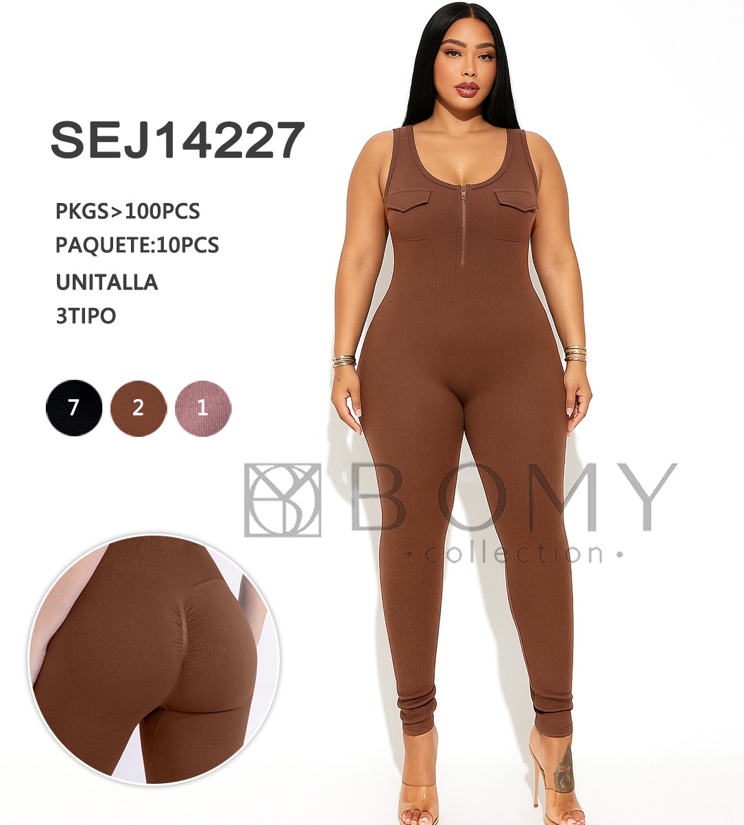 Jumpsuit enterizo acanalado con cremallera-SEJ14227