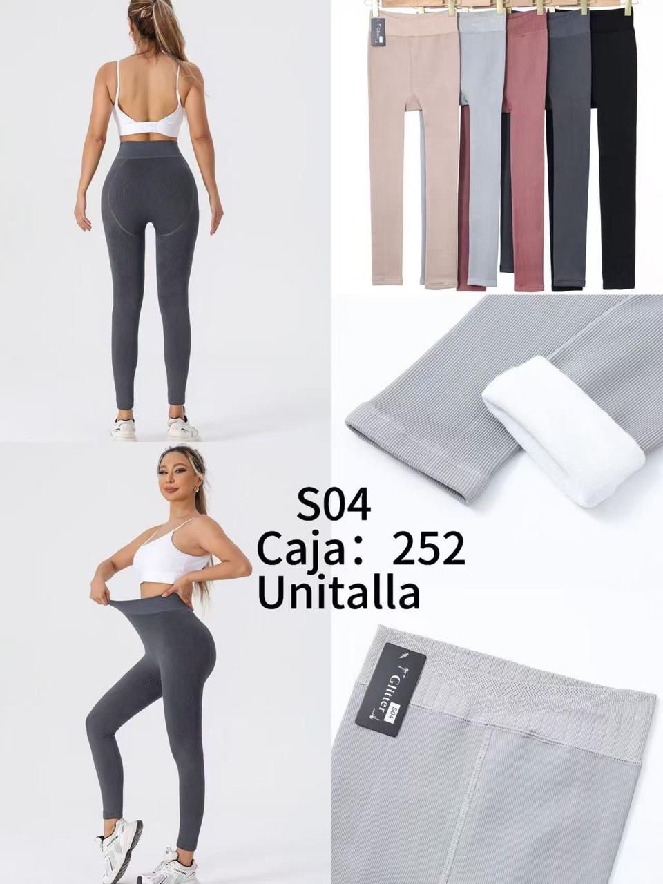 Leggings afelpados acanalados de cintura alta-S04