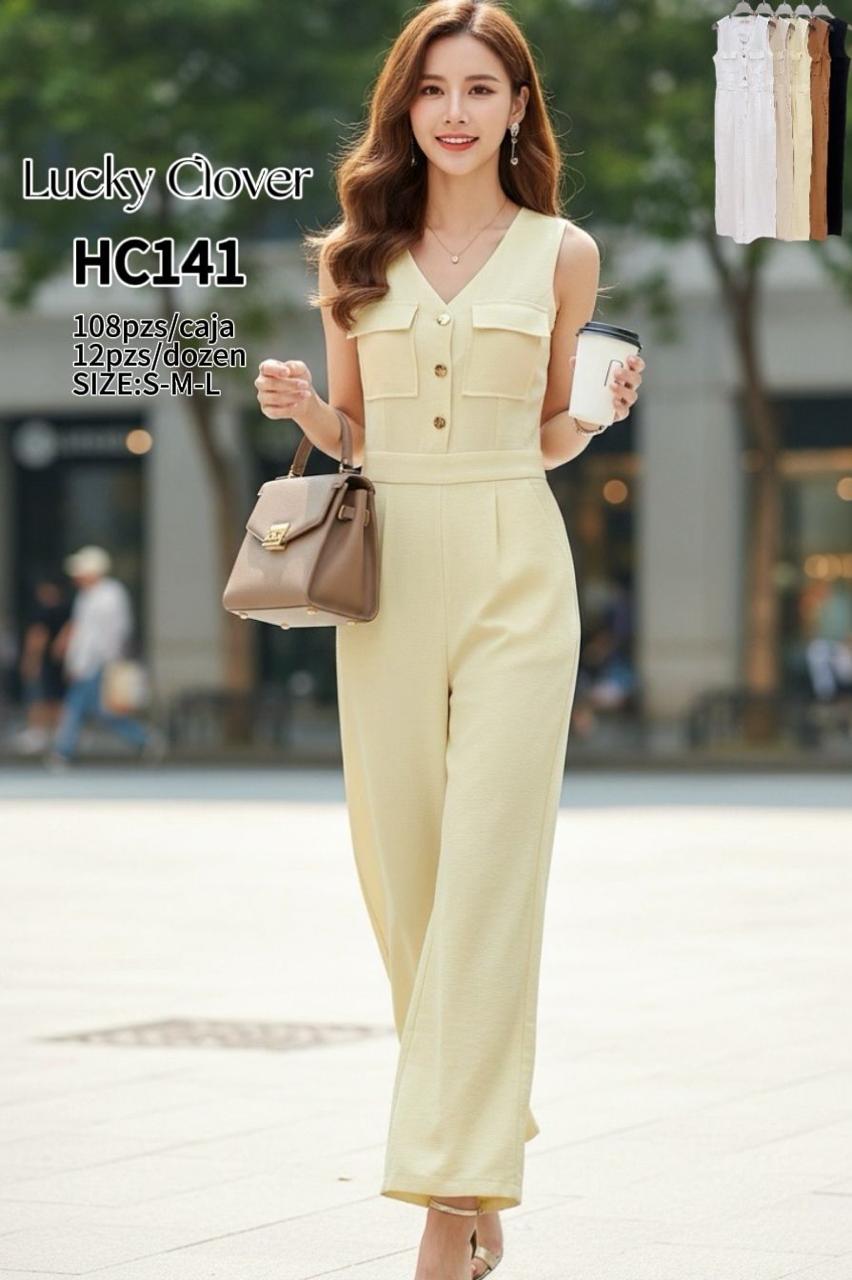 Mono largo de mujer con cuello en V y botones-HC141