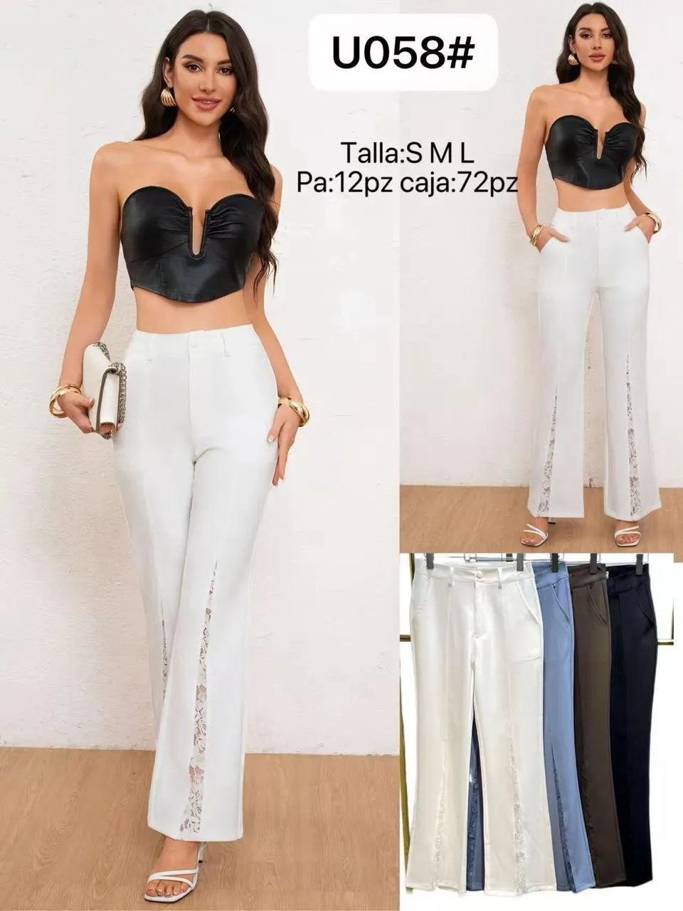 Pantalón acampanado con detalle de encaje-U058