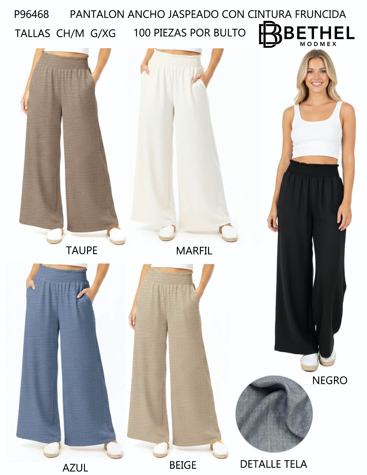 Pantalon ancho con cintura fruncida-P96468