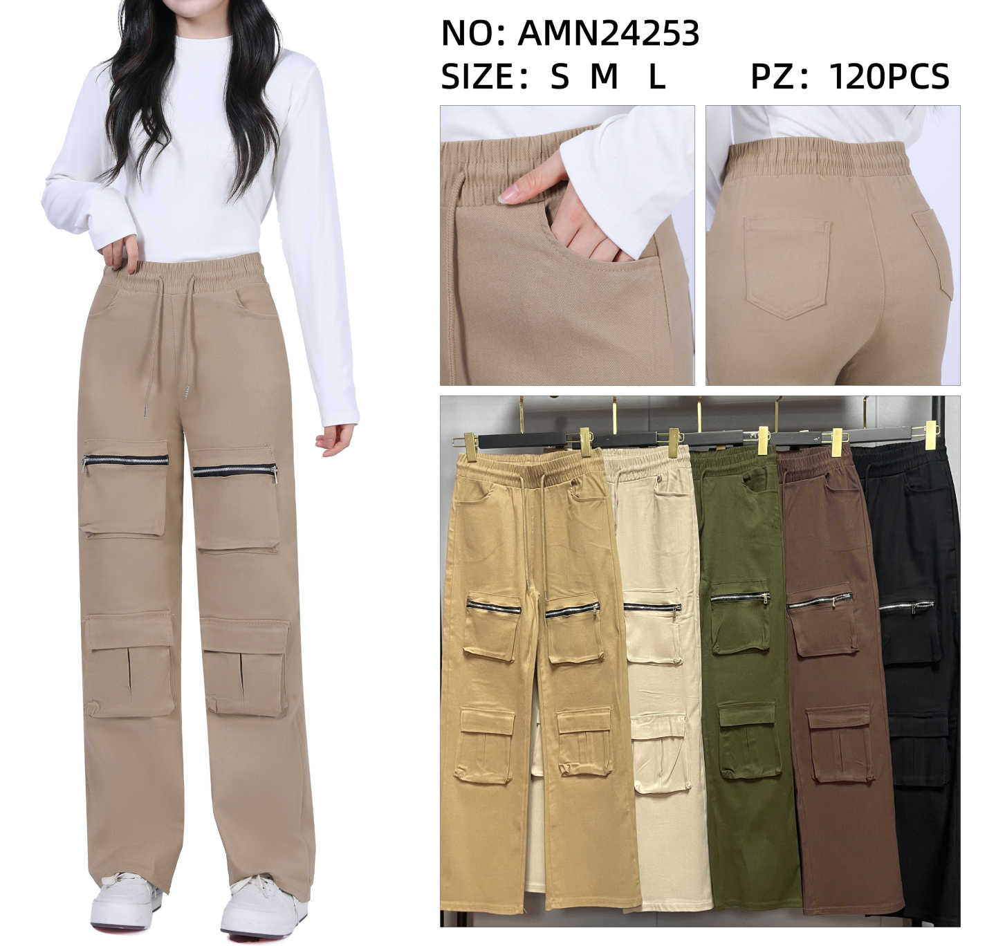 Pantalón Cargo con Bolsillos y Cierre-24253