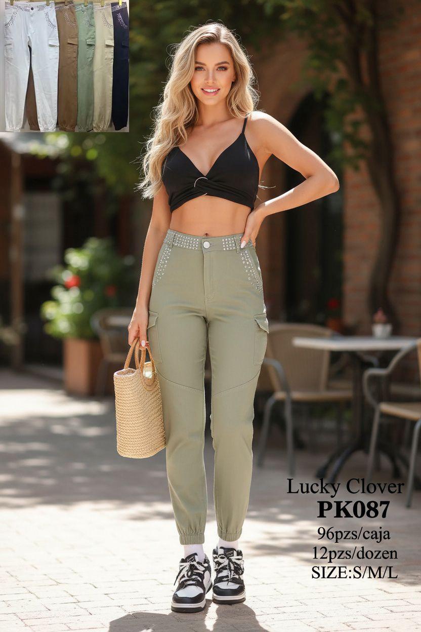 Pantalón cargo con detalle de brillantes-PK087