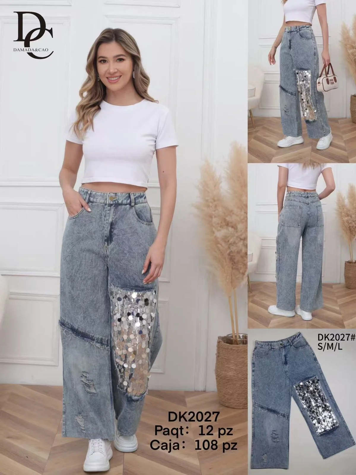 Pantalón de mezclilla con lentejuelas-DK2027#