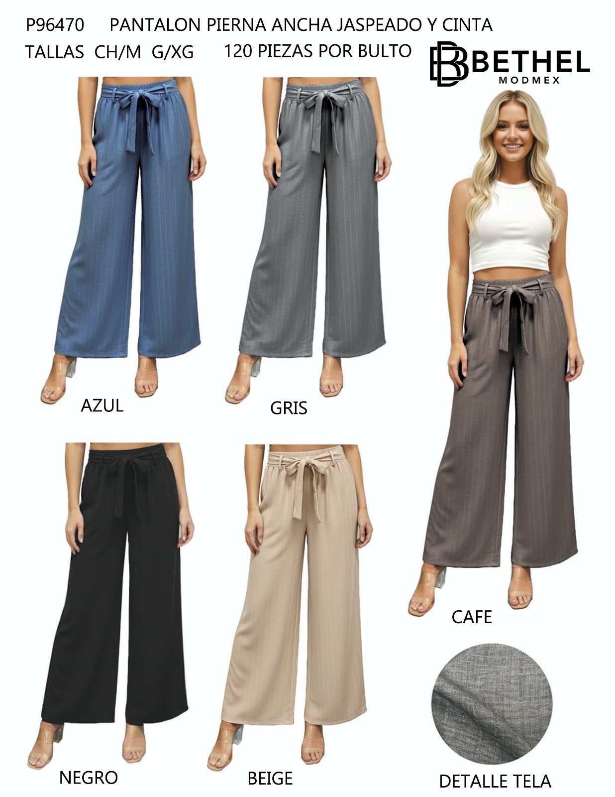 Pantalón de pierna ancha jaspeado con cinta-P96470