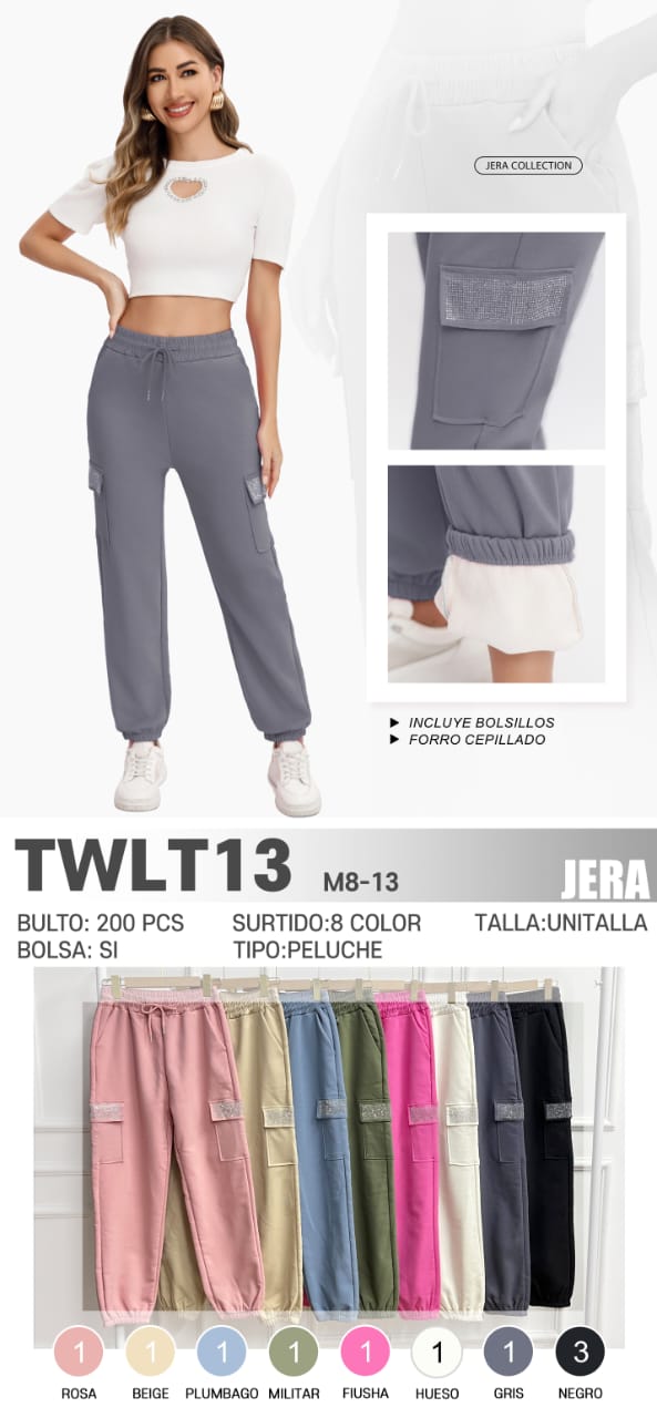 Pantalón deportivo afelpado con bolsillos-TWLT13