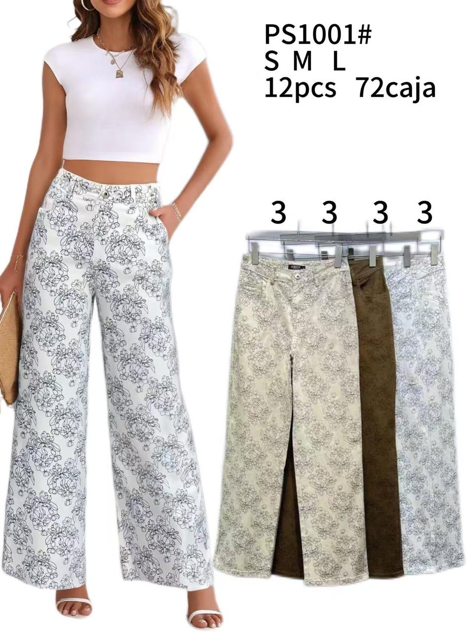Pantalón estampado de pierna ancha para mujer-PS1001