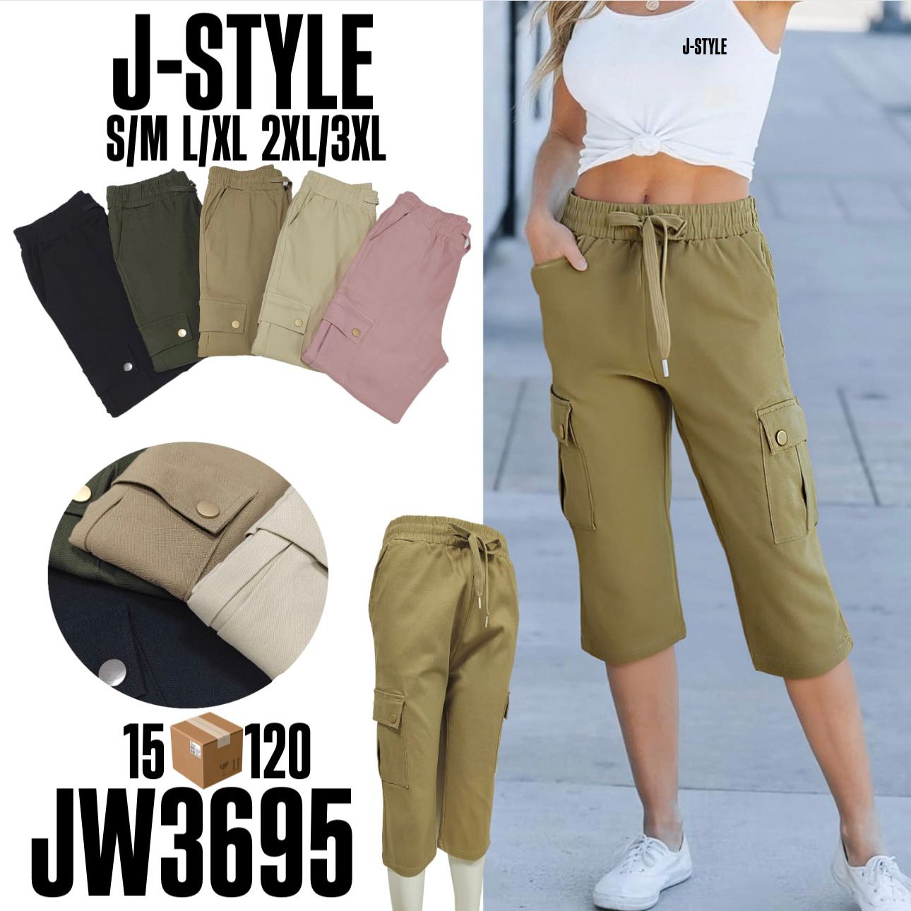 Pantalones Capri Cargo con Elástico-JW3695