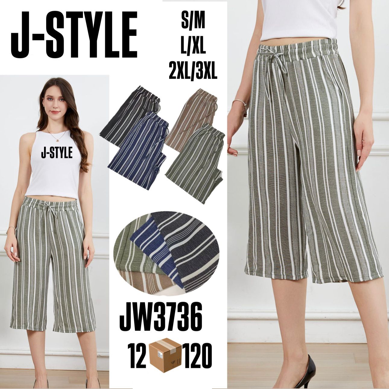Pantalones Capris Rayados de Mujer-JW3736