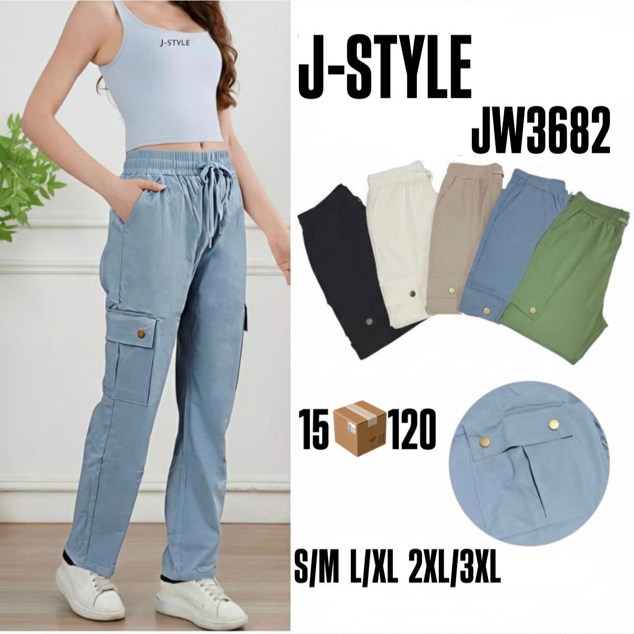 Pantalones cargo de mujer-JW3682