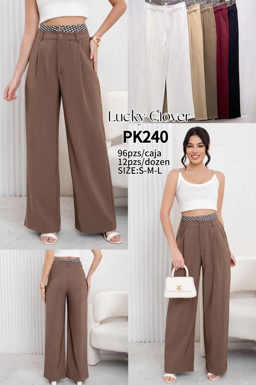 Pantalones de pierna ancha con cintura a cuadros-PK240
