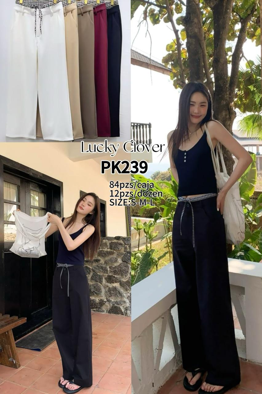 Pantalones de pierna ancha con cinturón a cuadros-PK239
