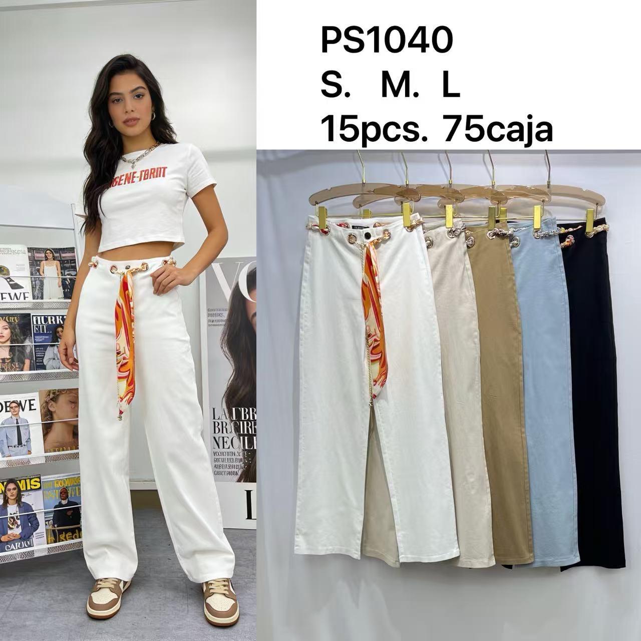 Pantalones de pierna ancha con cinturón de cadena y pañuelo-PS1040