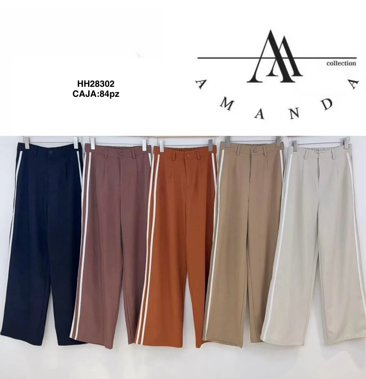 Pantalones de vestir con rayas laterales para mujer-HH28302
