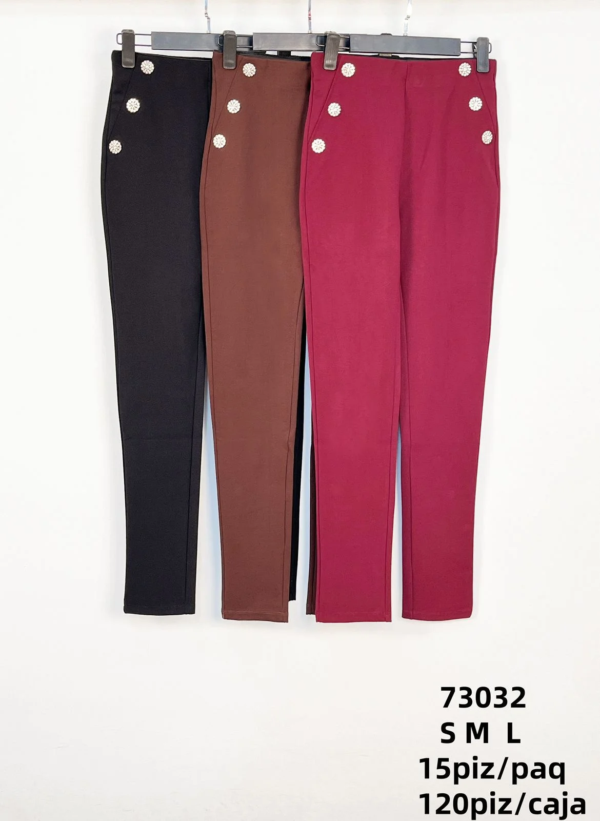 Pantalones de vestir para mujer con detalle de botones-73032