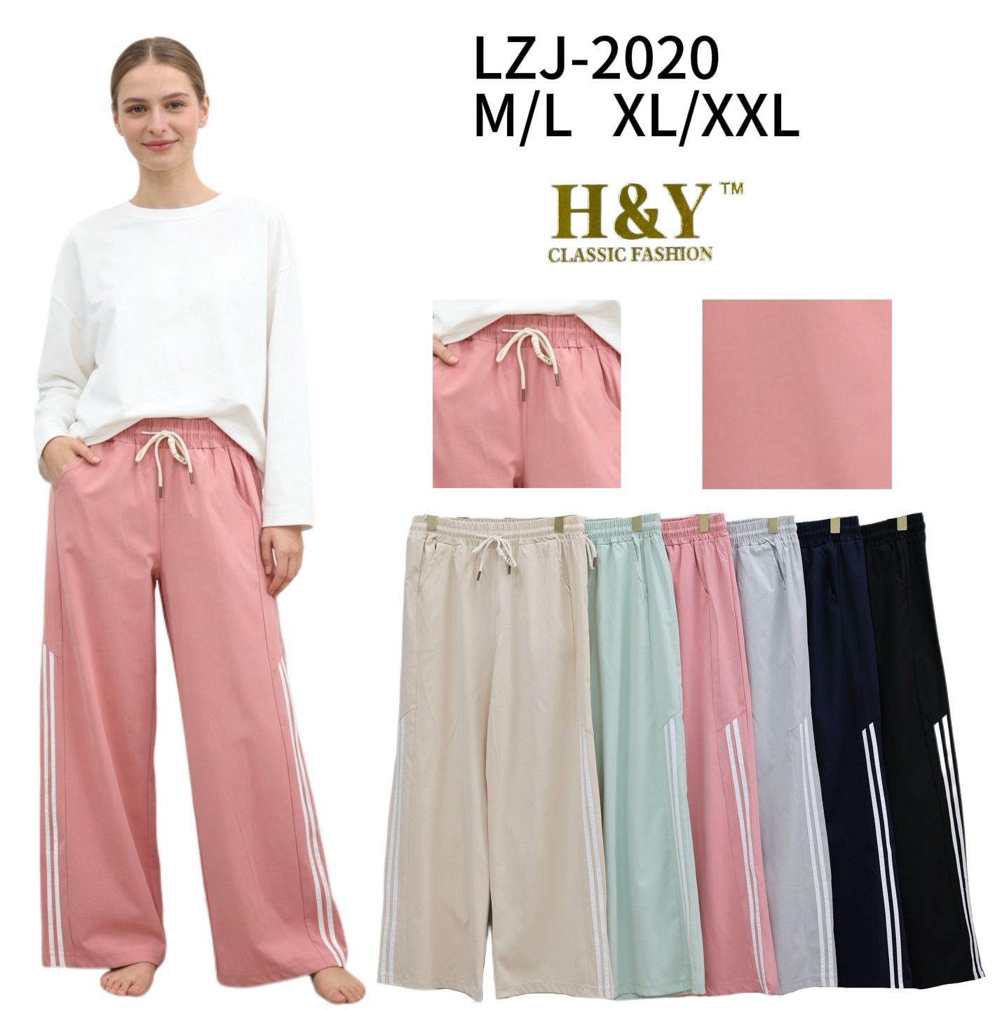 Pantalones deportivos anchos con rayas-LZJ-2020