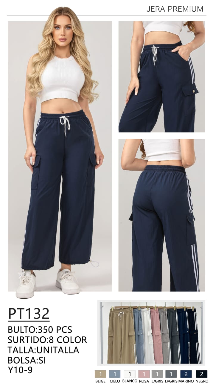 Pantalones deportivos cargo anchos con cordón-PT132