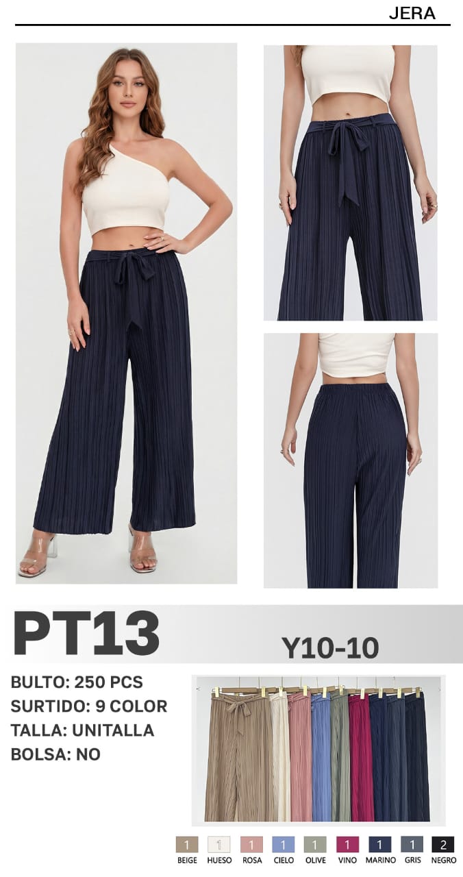 Pantalones Plisados de Pierna Ancha-PT13