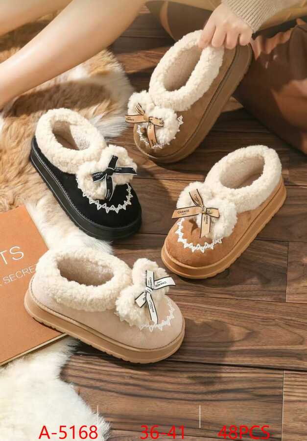 Pantuflas de invierno con lazo y forro de borrego-A-5168