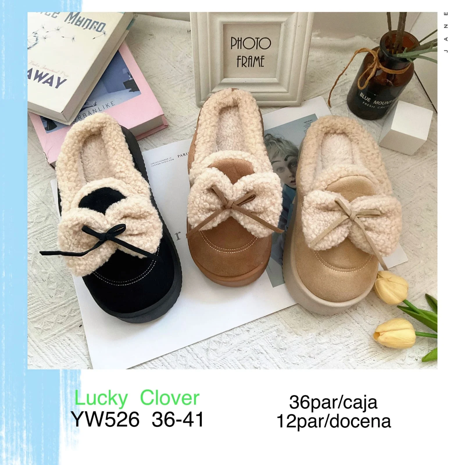 Pantuflas de mujer con lazo-YW526
