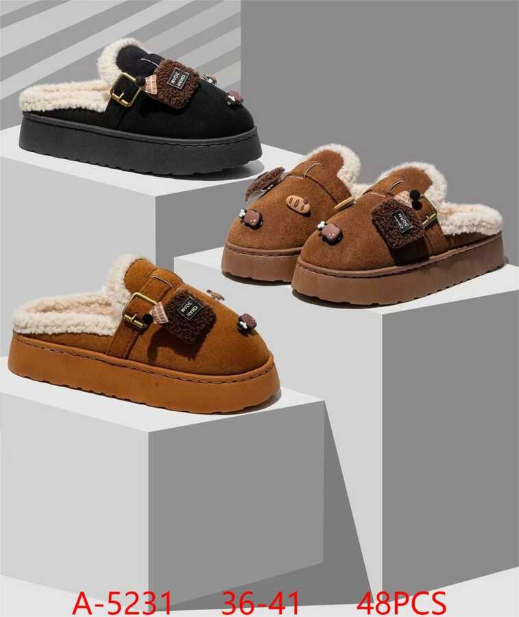 Pantuflas tipo mule con forro de borrego y hebilla-A-5231