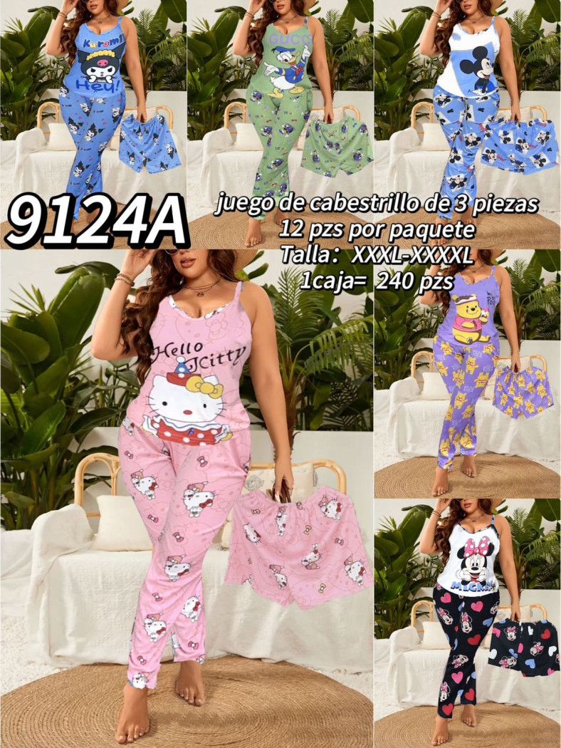 Pijama de 3 piezas estampada-9124A