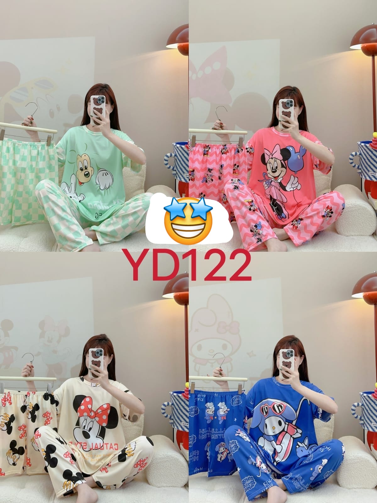 Pijama de dos piezas con estampados de personajes-YD122