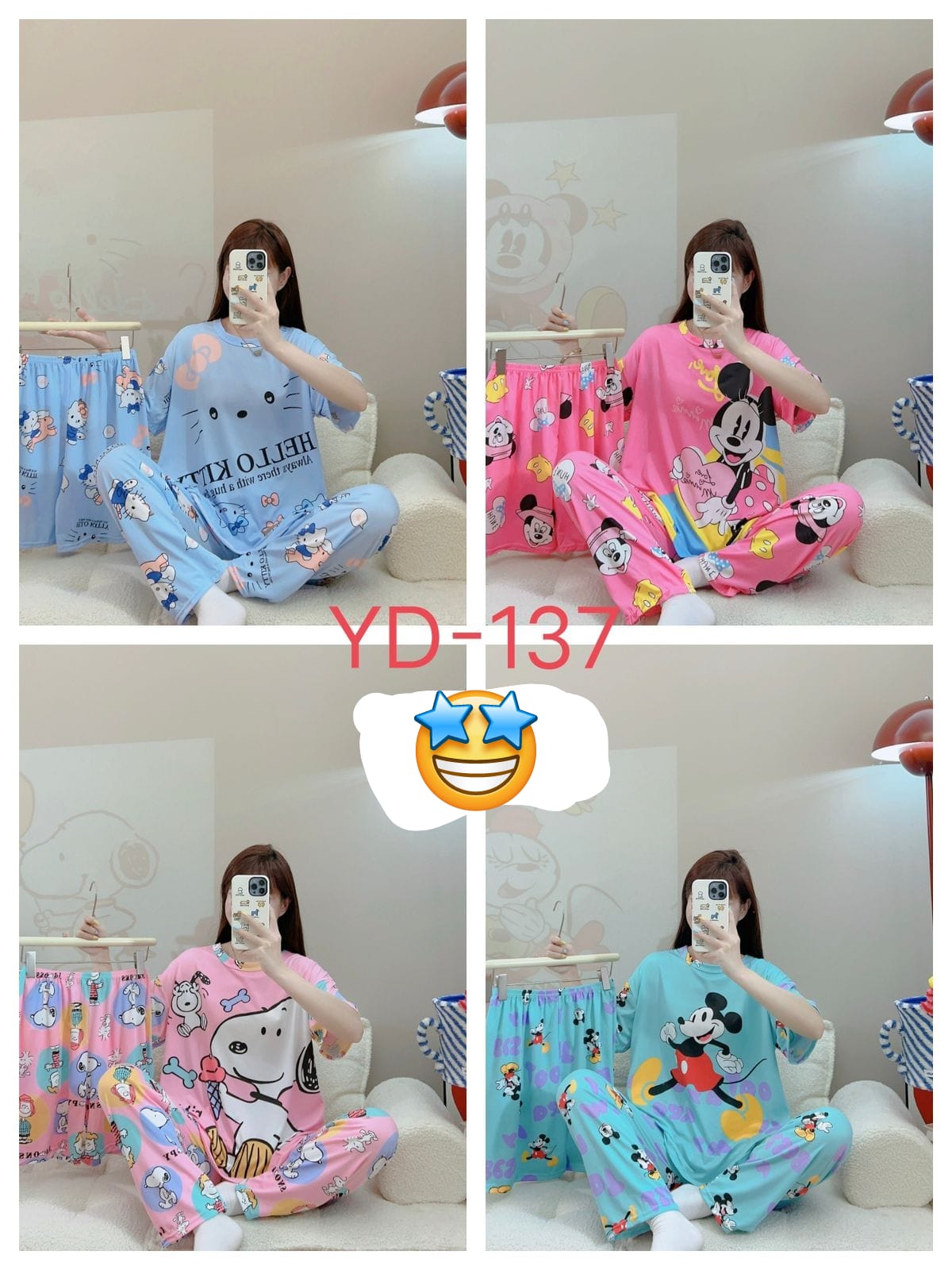 Pijama de dos piezas con estampados de personajes de dibujos animados-YD-137