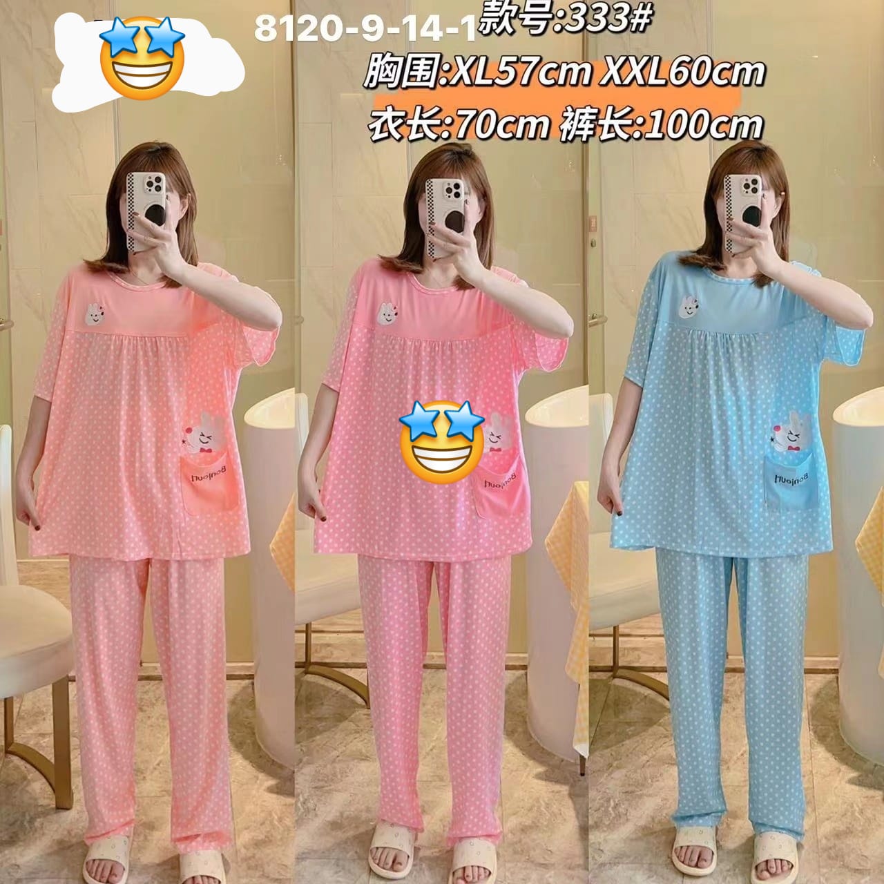 Pijama de dos piezas con lunares y diseño de conejo-333#