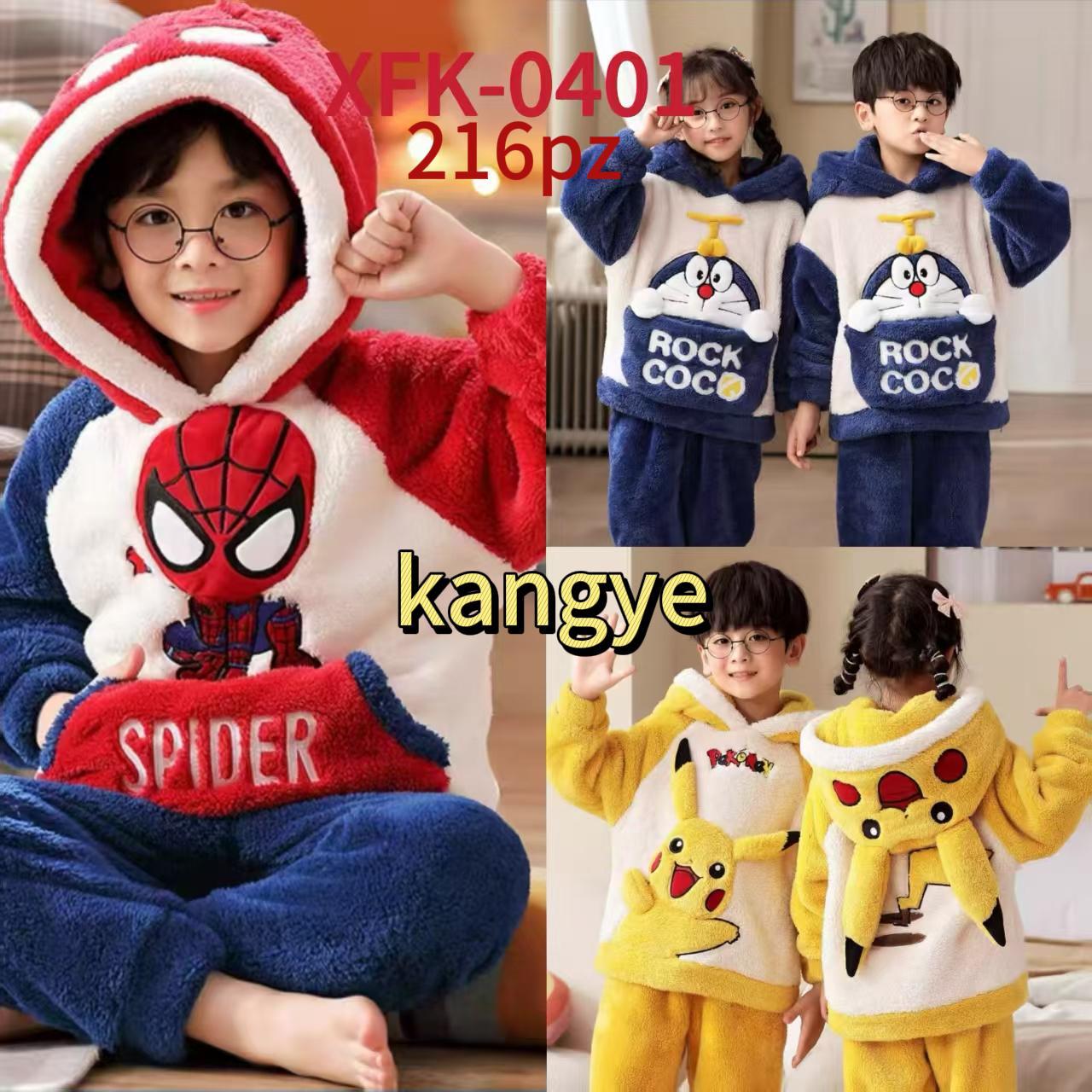 Pijama de Peluche Infantil con Diseños de Personajes-XFK-0401