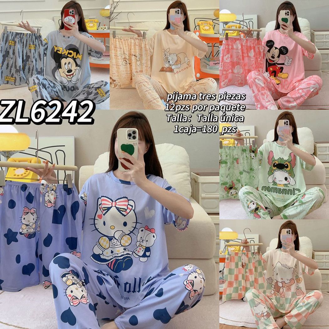 Pijama de tres piezas para mujer con estampado de personajes-ZL6242