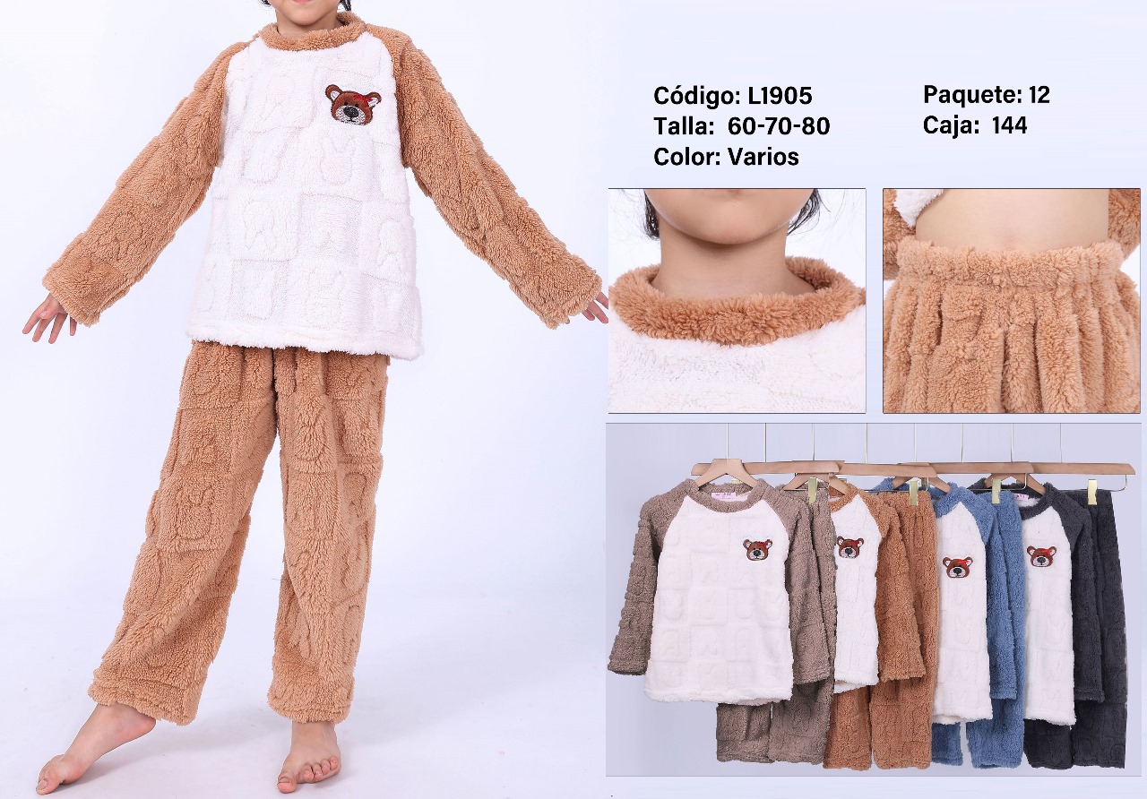 Pijama infantil de dos piezas con diseño de oso-L1905