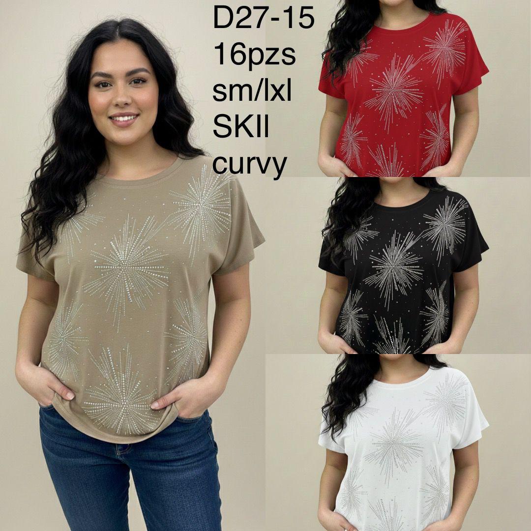 Playera con diseño de estrellas de pedrería-D27-15