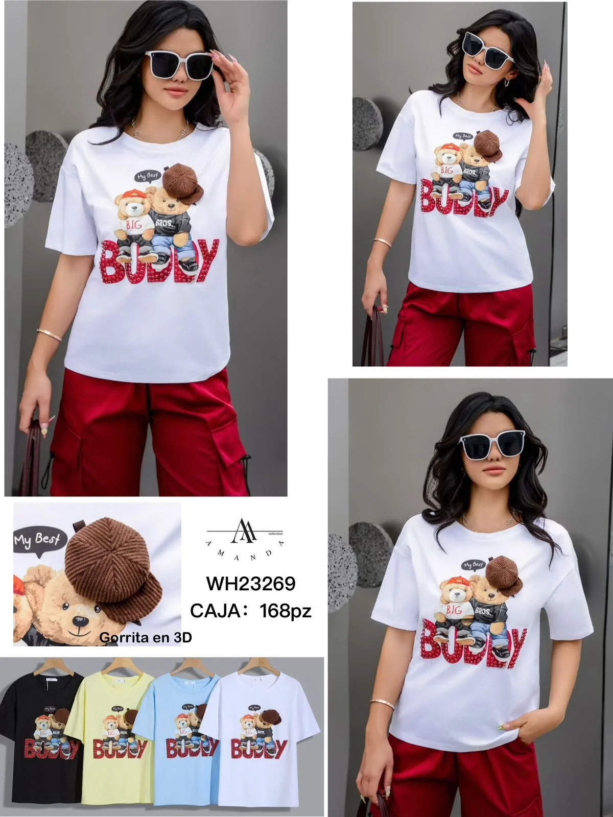 Playera con estampado de ositos ‘Buddy’-WH23269