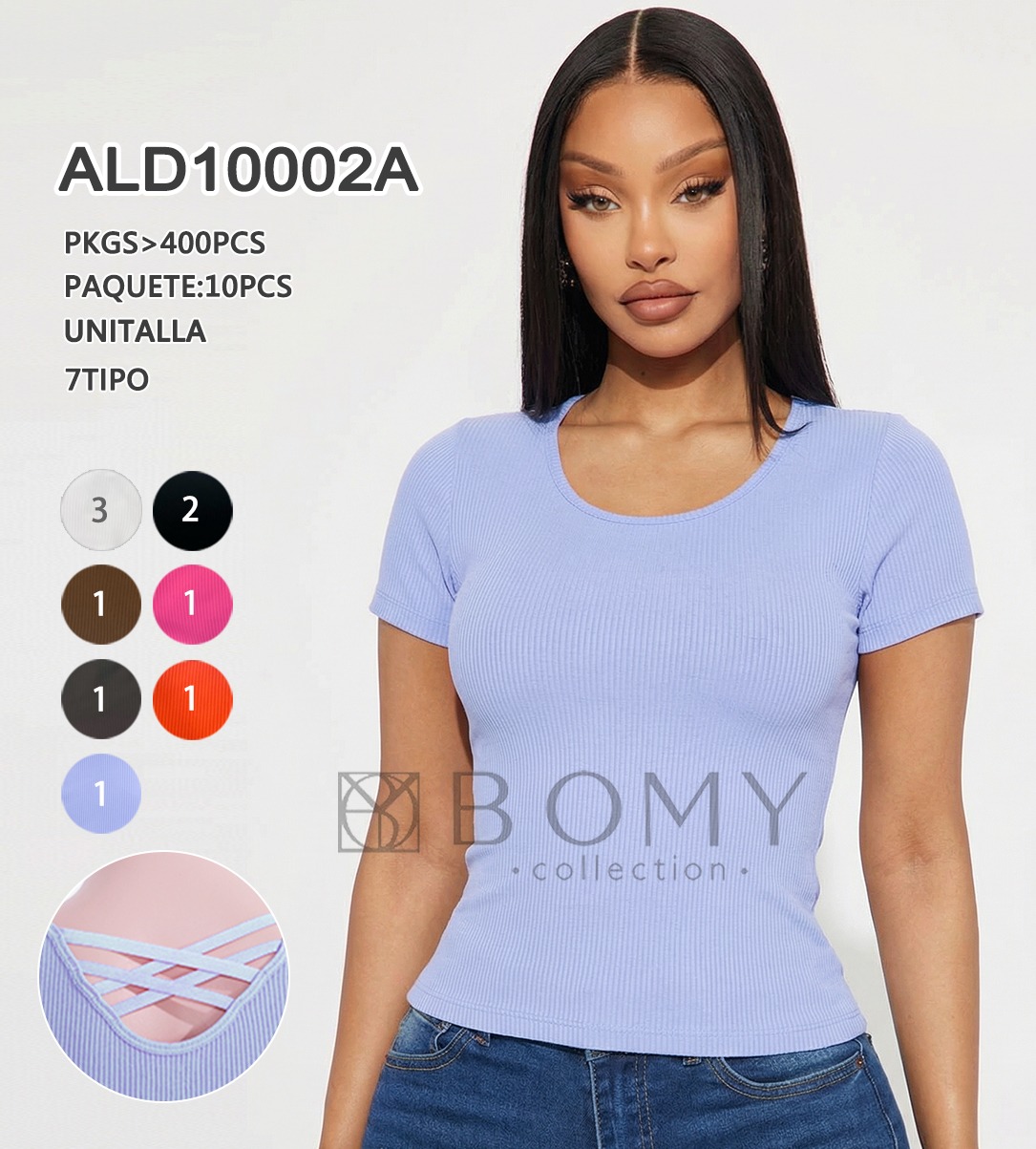 Playera de manga corta acanalada con detalle de tiras-ALD10002A