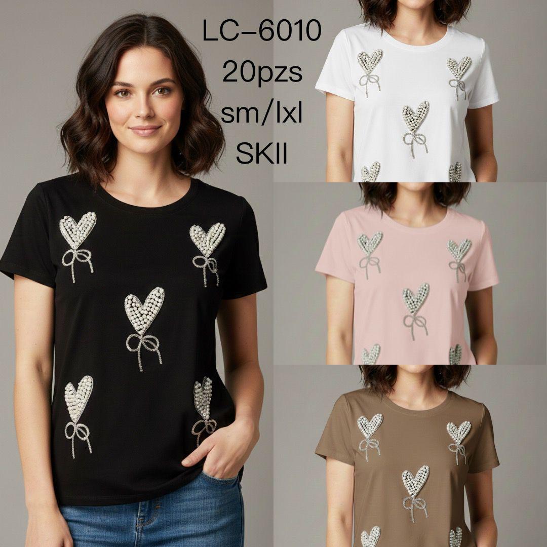 Playera de manga corta con diseño de corazones-LC6010