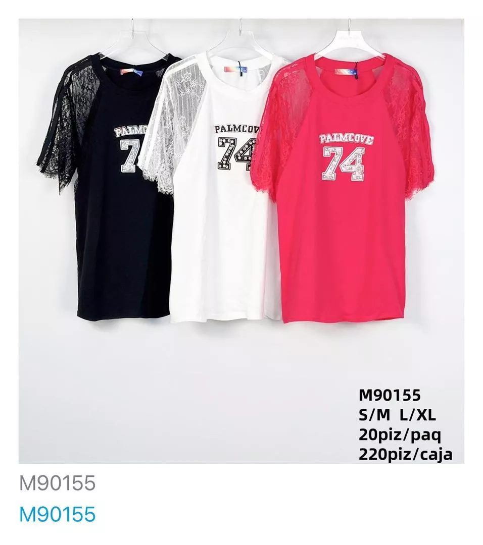 Playera de manga corta con encaje-M90155